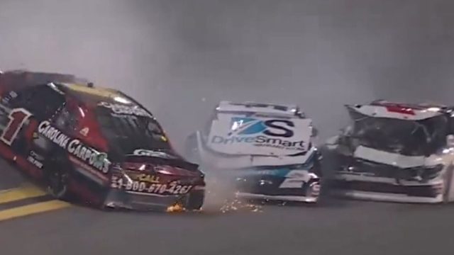 - His car collided with the outside wall, resulting in a dramatic impact that created sparks and chaos on the track.