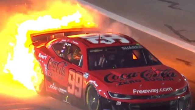 - Daniel Suarez’s race ended after a fire erupted in his No. 99 Chevrolet during the Coke Zero Sugar 400 at Daytona.
