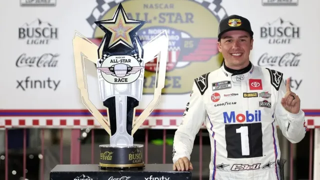 Christopher Bell delivered one of the most exciting performances of his career Sunday night at North Wilkesboro Speedway, outdueling Joey Logano in the closing laps to win his first-ever NASCAR All-Star Race. With fireworks in the sky and smoke trailing from his Mobil 1 Toyota Camry, Bell soaked in the moment with a hard-earned burnout as the crowd roared in appreciation.